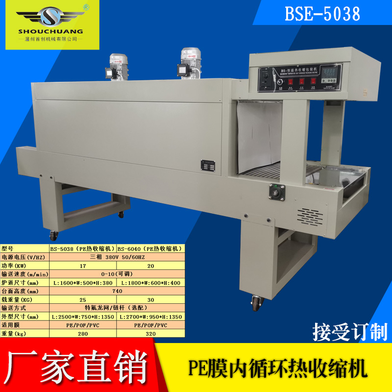 BSE-6040系列热收缩包装机是专为大件重型物体采用PE膜收缩包装设计。大型收缩包装物、亦能短时间内完全进行收缩,经包装后外观整洁,紧凑不散,方便码垛,保证产品的质量和长途运输的需要,适用于PE、PVC、POF等各种收缩包装材料。