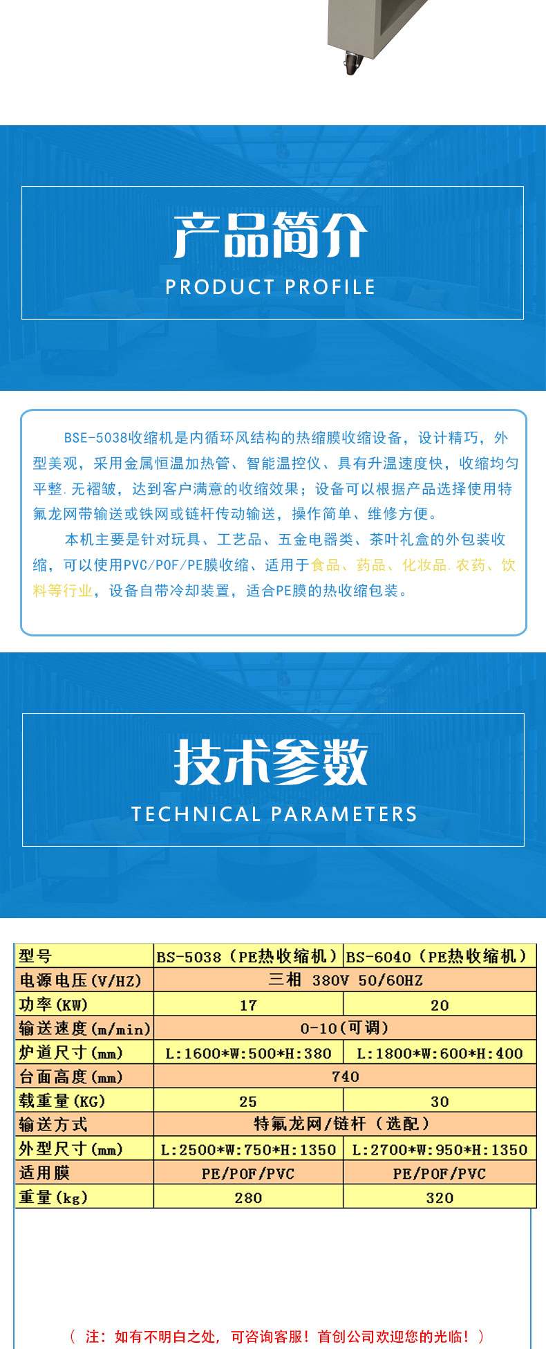 4、超大冷却风机,产品热缩后迅速冷却定型。