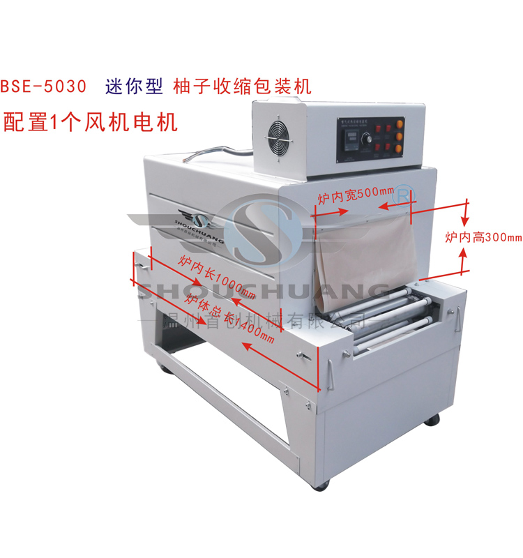 4.柚子包装机采用热风内循环结构,利用智能温控仪表控制温度,配置不锈钢金属发热管,不用再担心如何更换发热管的问题,同时也保证热风温度,炉内受热均匀,收缩效果好,使用寿命长。