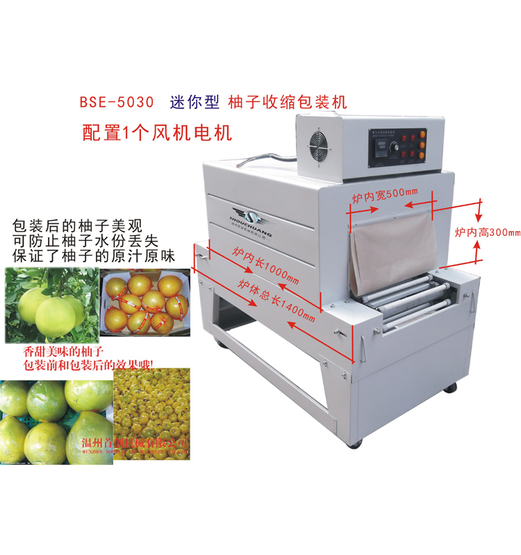 1.根据柚子的特点设计用于柚子薄膜收缩包装,保证柚子滚动时能达到理想的收缩效果。