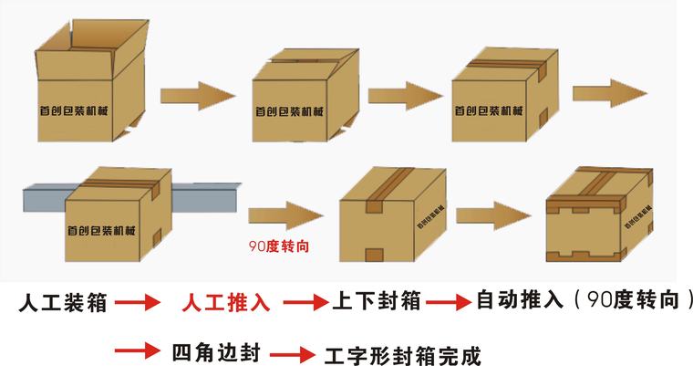 ③通过角边封箱机完成上下四角边封箱,达到理想的工字型封箱;