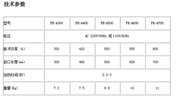 用途:FRT 系列简易式脚踏瞬时封口机,利用电气脉冲技术,使原有的工作时间2-4秒,缩短为0.2-2秒,是一种投资少、封口长度长、操作简单,提高效率的封口设备。能广泛用于食品、医药、土特产、电器元器件、工厂、商店、服务行业等。