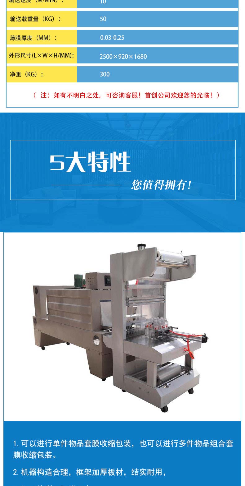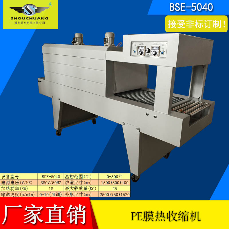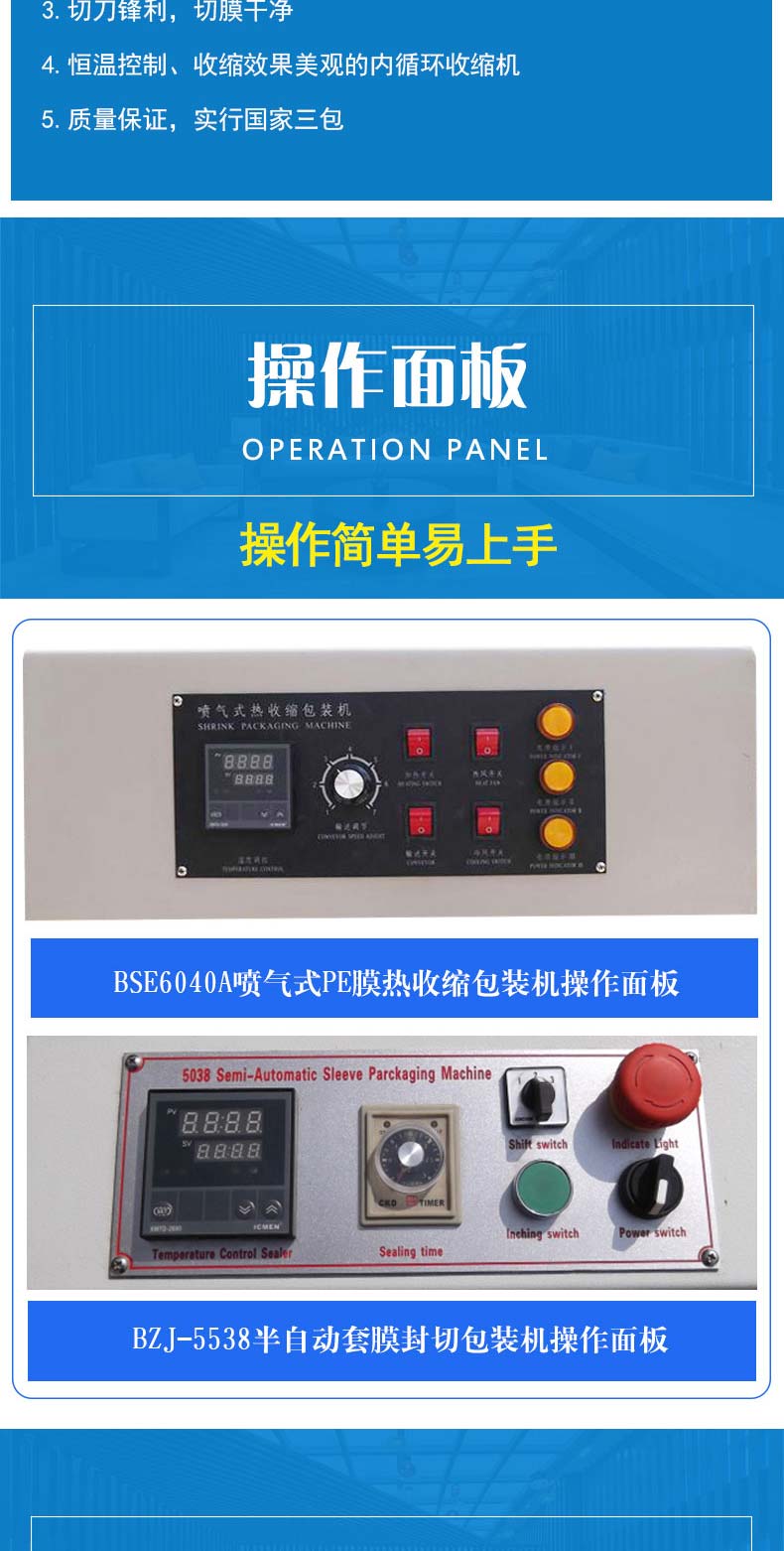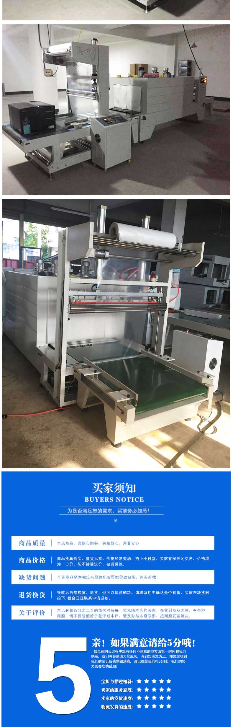 产品说明:BZJ-5538半自动套膜封切包装机采用气缸推料,机器自动封切进入收缩包装机。该袖口式套膜机适用于易拉罐,矿泉水,啤酒,玻璃瓶,饮料等各种瓶的无底托或有底托热收缩包装;同时与恒温PE收缩机配套使用,使物品达到理想的包装效果。本机整机性能稳定,使用寿命长。
