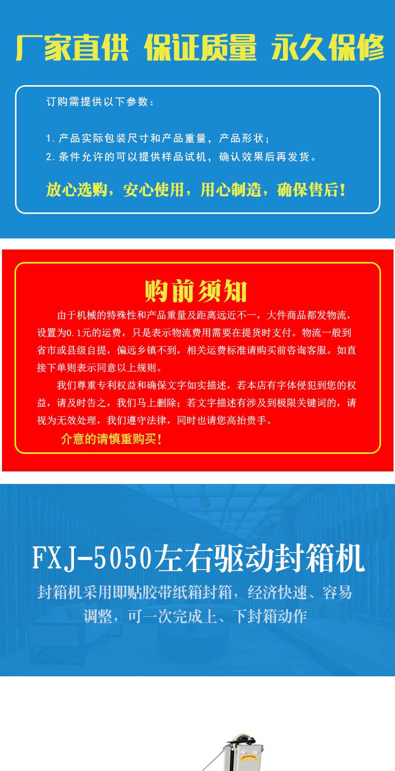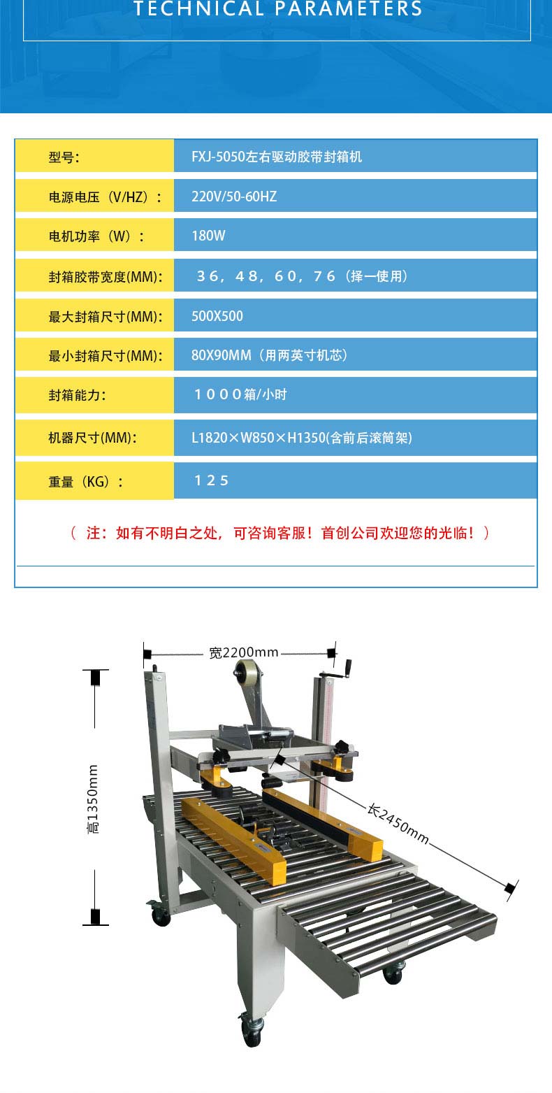 当前位置:首页》产品展示》FXJ-5050封箱机